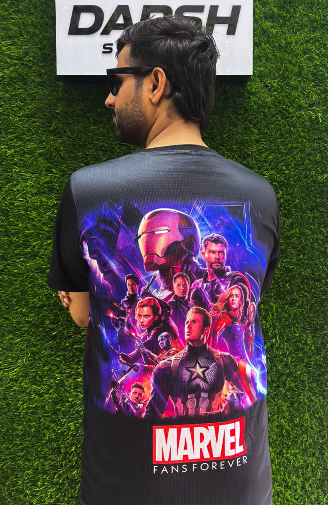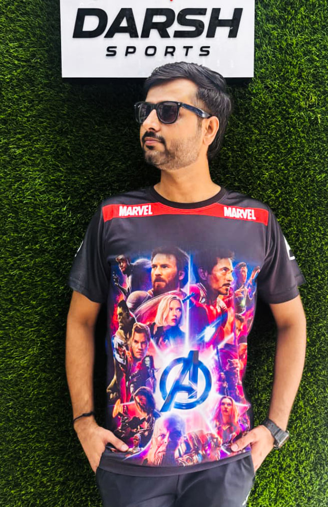 Show off your power and energy with the Darsh Sports Avengers Marvel Comics Sublimation T-Shirt, designed for those who never back down. Crafted from high-quality, breathable polyester fabric, this half-sleeve tee ensures maximum comfort during workouts, sports, or casual outings. The vibrant black and red Avengers Marvel Comics graphic gives it an aggressive, dynamic look, while the moisture-wicking technology keeps you cool and dry all day long.