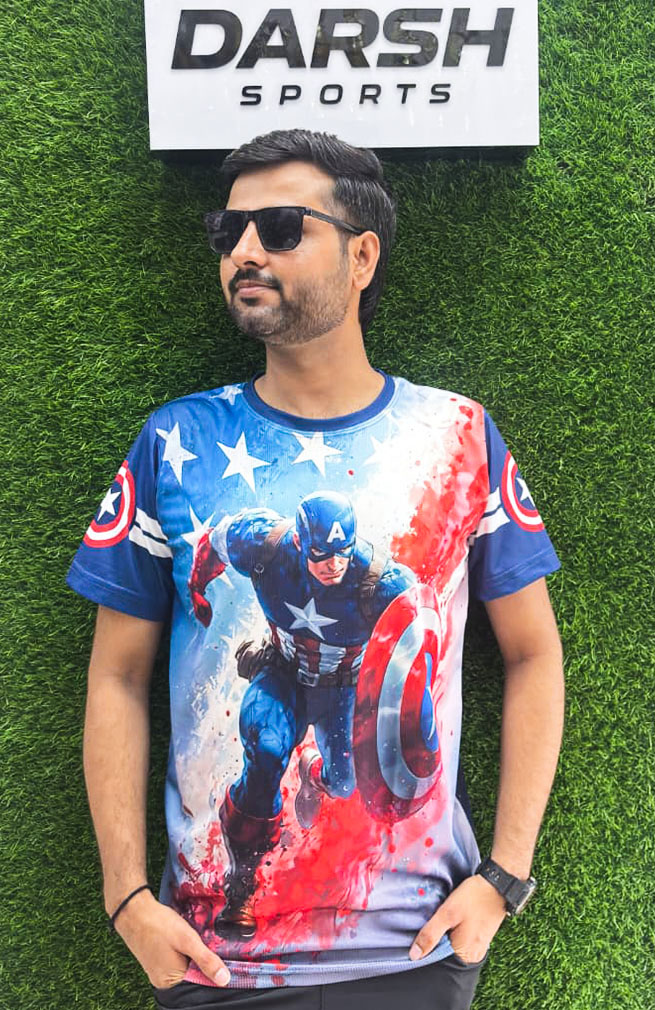 Show off your power and energy with the Darsh Sports Clapton America Marvel Comics Sublimation T-Shirt, designed for those who never back down. Crafted from high-quality, breathable polyester fabric, this half-sleeve tee ensures maximum comfort during workouts, sports, or casual outings. The vibrant blue and red Clapton America Marvel Comics graphic gives it an aggressive, dynamic look, while the moisture-wicking technology keeps you cool and dry all day long.