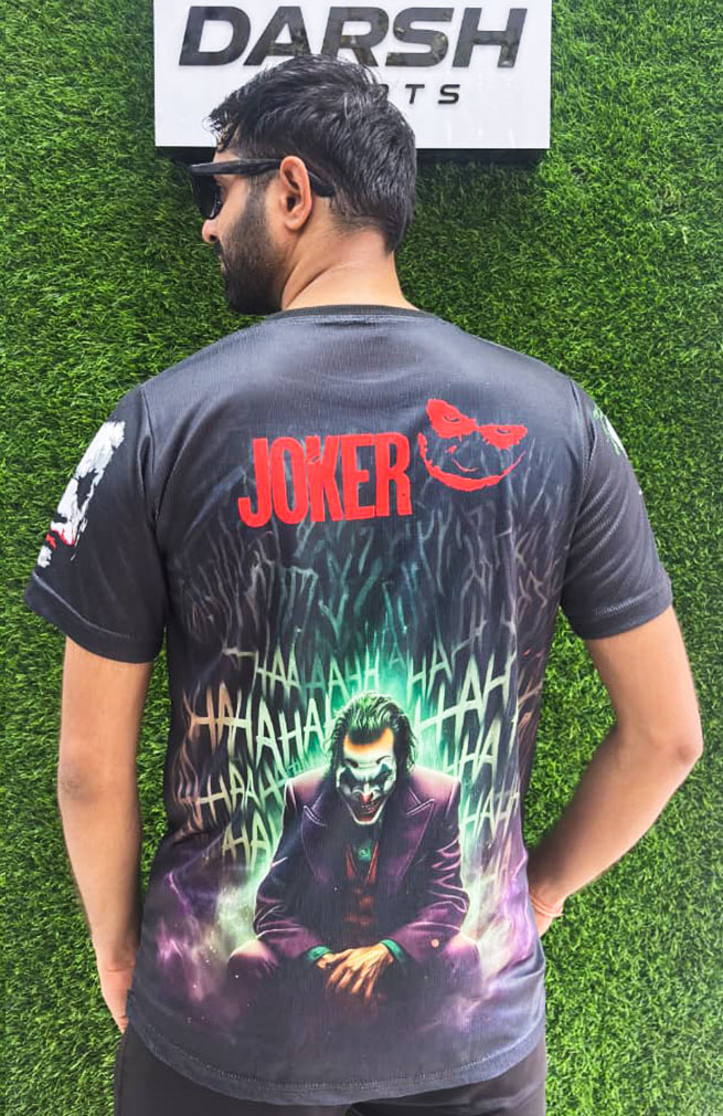Show off your power and energy with the Darsh Sports Jocker DC Comics Sublimation T-Shirt, designed for those who never back down. Crafted from high-quality, breathable polyester fabric, this half-sleeve tee ensures maximum comfort during workouts, sports, or casual outings. The vibrant black and green Jocker DC Comics graphic gives it an aggressive, dynamic look, while the moisture-wicking technology keeps you cool and dry all day long.