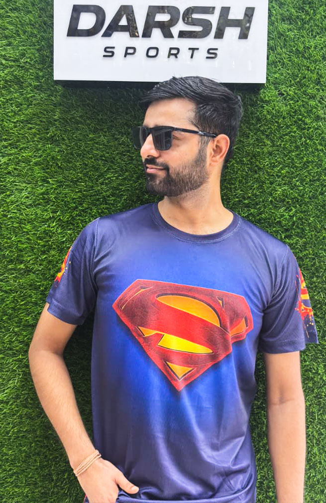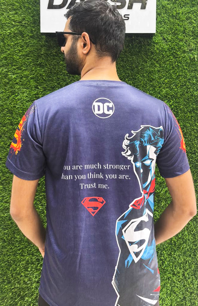 Show off your power and energy with the Darsh Sports Superman Sublimation T-Shirt, designed for those who never back down. Crafted from high-quality, breathable polyester fabric, this half-sleeve tee ensures maximum comfort during workouts, sports, or casual outings. The vibrant blue and red Superman graphic gives it an aggressive, dynamic look, while the moisture-wicking technology keeps you cool and dry all day long.