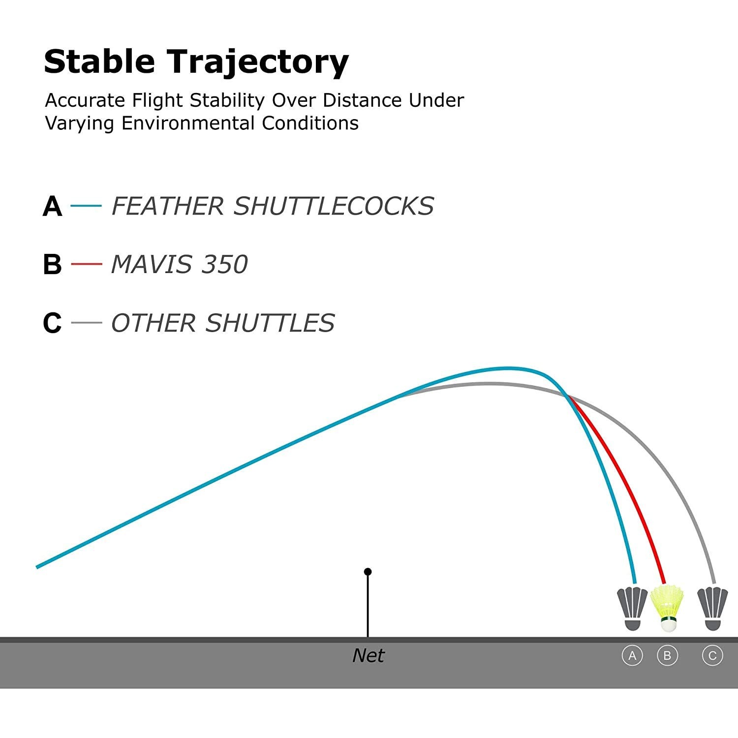 - When smashed, a Mavis shuttlecock recovers in only 0.02 seconds, this performance is just 0.005 seconds slower than a Yonex feather shuttlecock and 0.008 seconds faster than the recovery of an ordinary shuttlecock